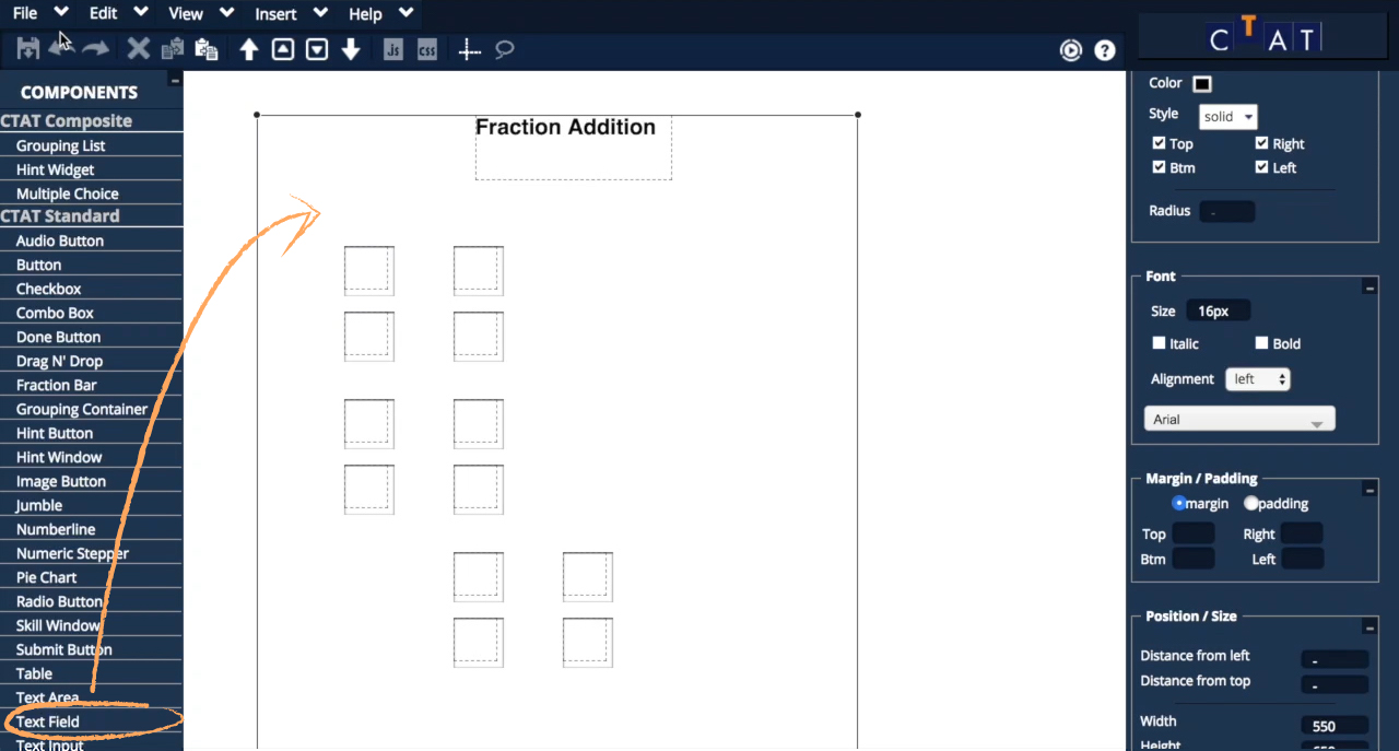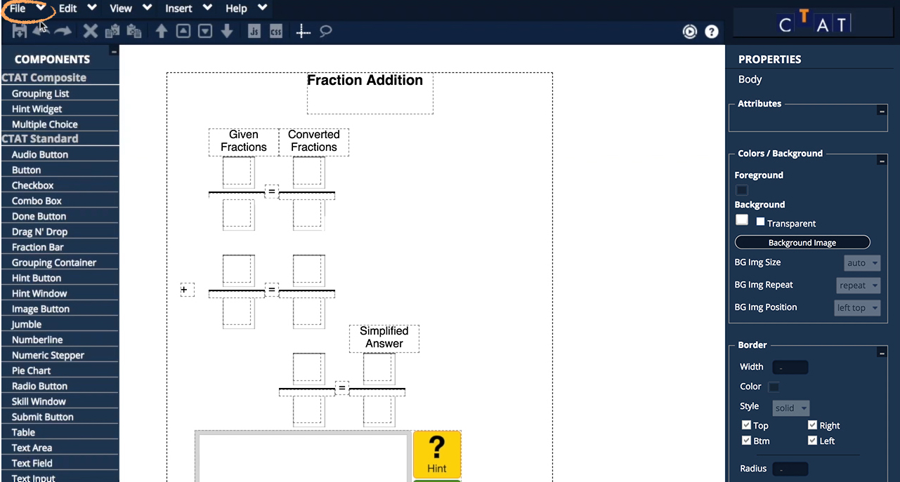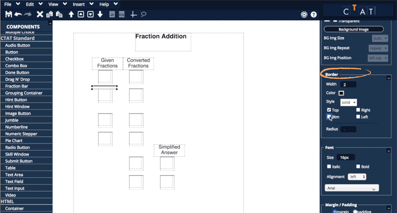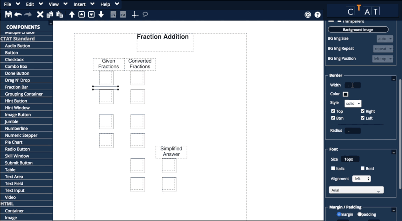 In this tutorial, you will create a student interface for solving fraction addition problems using the CTAT HTML Editor.
